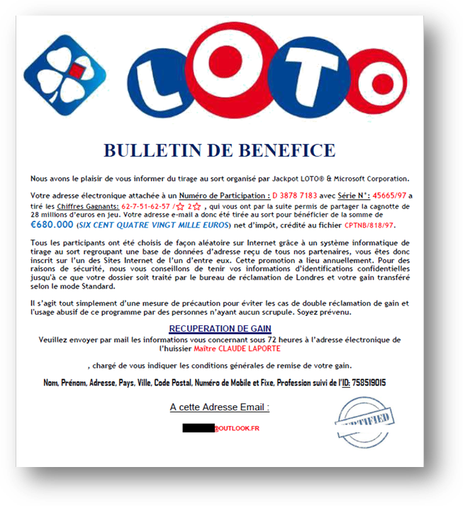 N'est-ce pas formidable ? Un de nos clients s'est vu gratifier d'un formidable gain de 680 000€ de surcroît pour une loterie à laquelle il n'a pas participé !