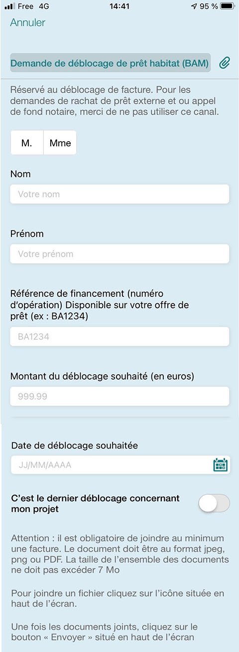 Afin de faciliter et de sécuriser l’envoi de vos demandes de déblocage de prêt immobiler,