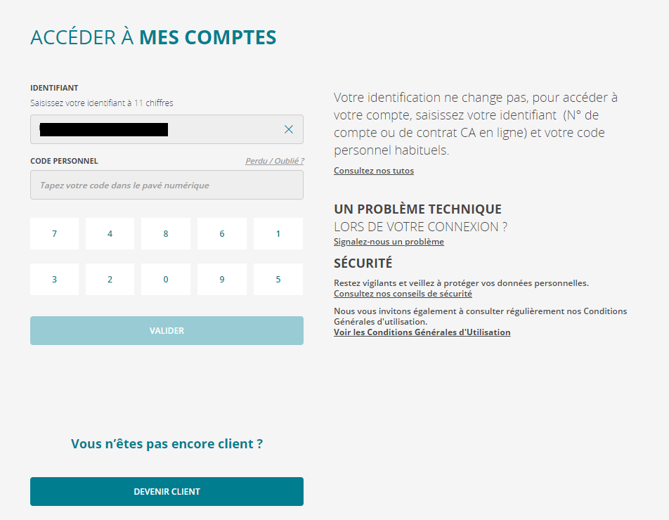de votre espace personnel Crédit Agricole en Ligne